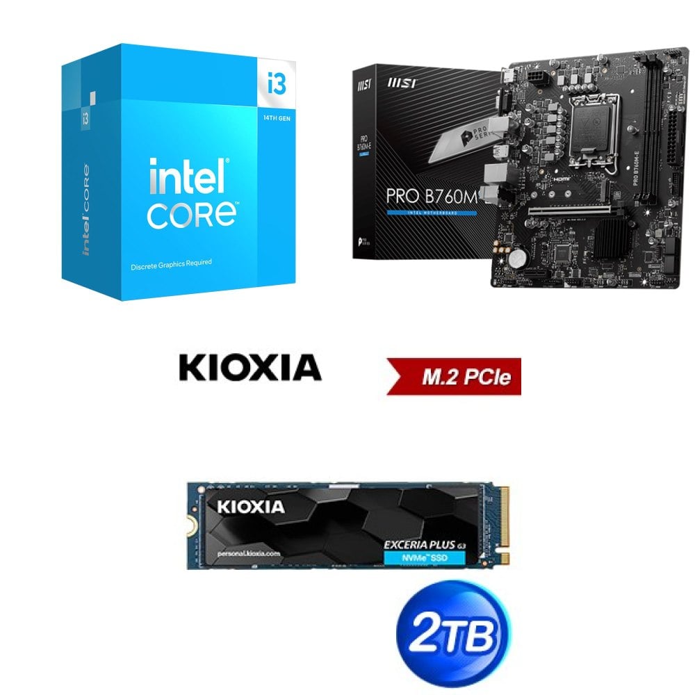 ☆裝機配★ i3-14100F+微星 PRO B760M-E D5 MATX主機板+鎧俠 EXCERIA G2 1TB PCIe Gen3x4 SSD