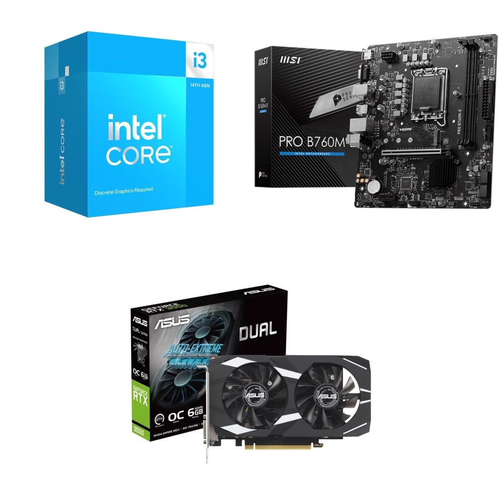 ☆裝機配★ i3-14100F+微星 PRO B760M-E D5 MATX主機板+華碩 DUAL-RTX3050-O6G 顯示卡