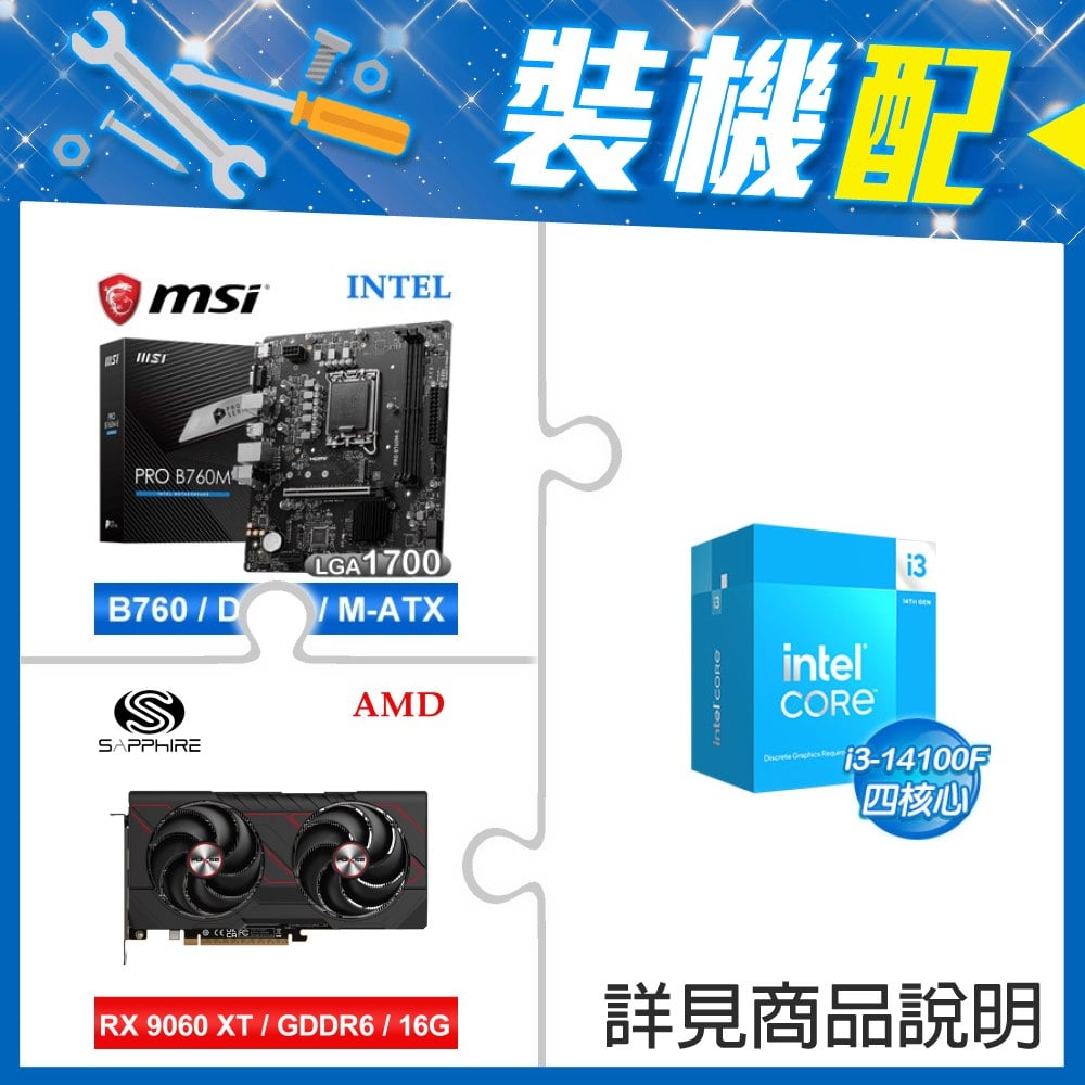 ☆裝機配★ i3-14100F+微星 PRO B760M-E D5 MATX主機板+藍寶石 PULSE 脈動 RX 9060 XT GAMING OC 16GB 顯示卡