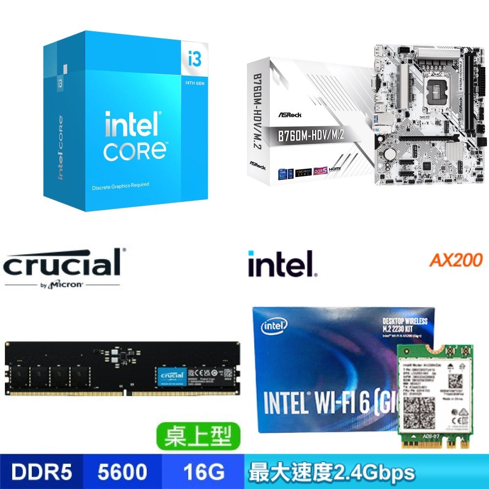 ☆期間限定★ i3-14100F+華擎 B760M-HDV/M.2 D5 M-ATX主機板+美光 Crucial DDR5-5600 16G 記憶體 ★送Intel AX200 Wi-Fi 6 (Gig+) M.2無線網卡