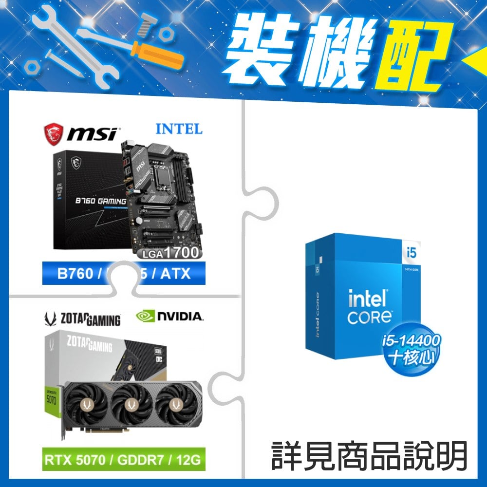 ☆裝機配★ i5-14400+微星 B760 GAMING PLUS WIFI D5 ATX主機板+索泰 RTX 5070 SOLID OC 12G 顯示卡