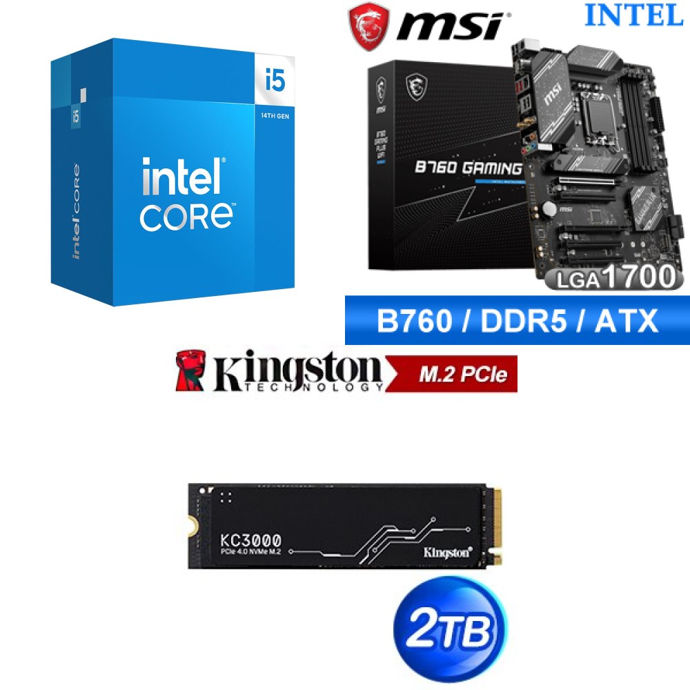 ☆裝機配★ i5-14400+微星 B760 GAMING PLUS WIFI D5 ATX主機板+金士頓 KC3000 2TB PCIe 4.0 NVMe M.2 SSD