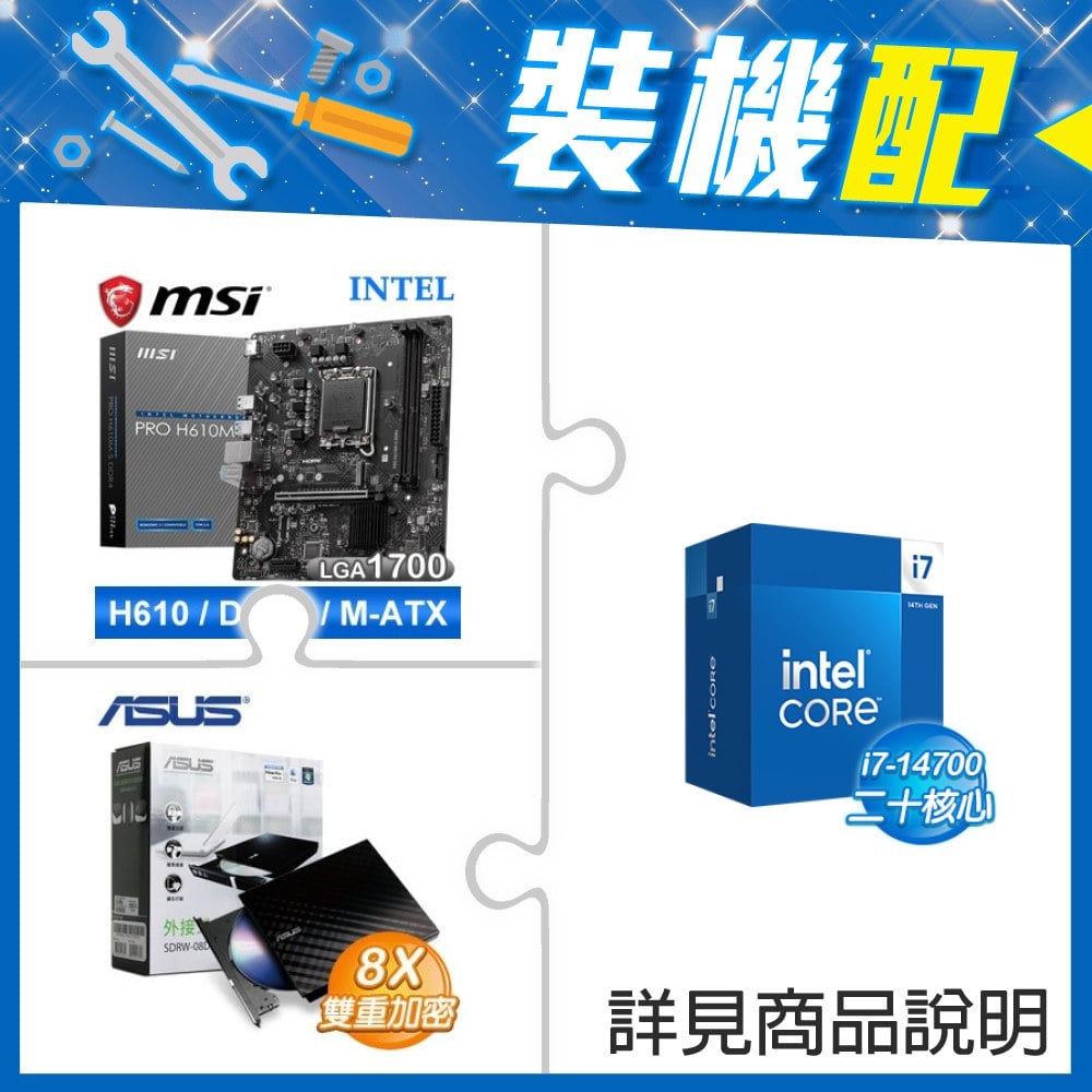 ☆裝機配★ i7-14700+微星 PRO H610M-S D4 M-ATX主機板+華碩 SDRW-08D2S-U 外接式燒錄機《黑》