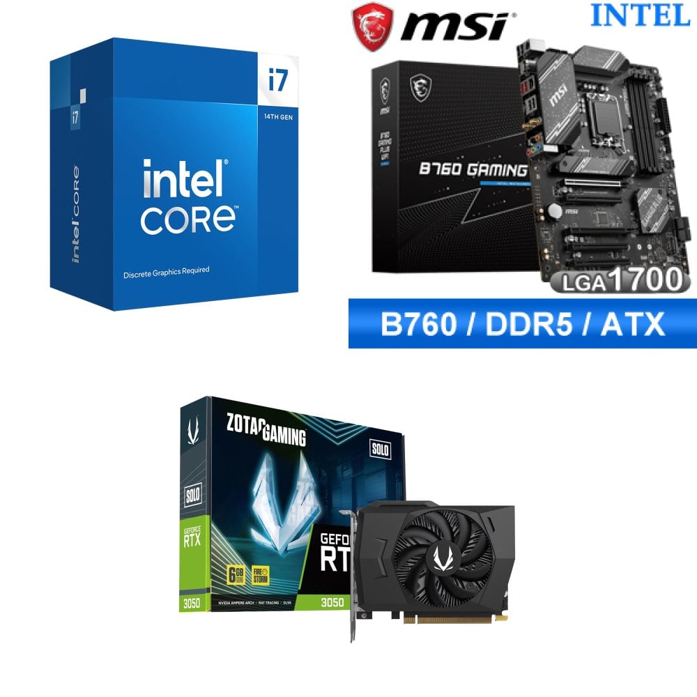 ☆裝機配★ i7-14700+微星 B760 GAMING PLUS WIFI D5 ATX主機板+ZOTAC RTX3050 6G GDDR6 Solo 顯示卡