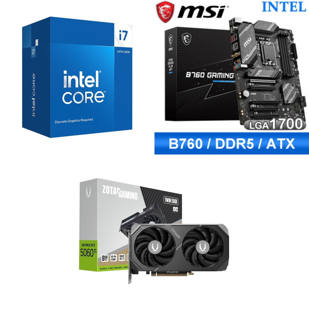 ☆裝機配★ i7-14700+微星 B760 GAMING PLUS WIFI D5 ATX主機板+索泰 RTX 5060 TI 8GB Twin Edge OC 顯示卡