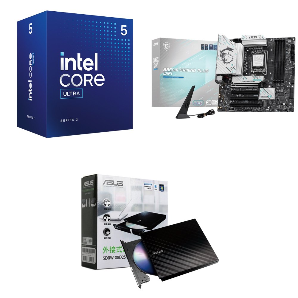 ☆裝機配★ Core U5 225+微星 B860M GAMING PLUS WIFI D5 MATX主機板+華碩 SDRW-08D2S-U 外接式燒錄機《黑》