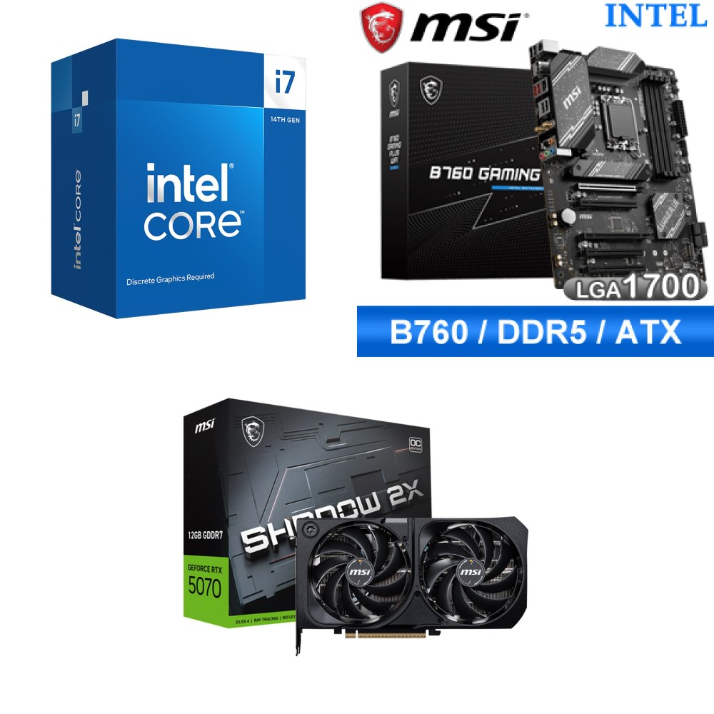 ☆裝機配★ i7-14700F+微星 B760 GAMING PLUS WIFI D5 ATX主機板+微星 RTX 5070 12G SHADOW 2X OC 顯示卡