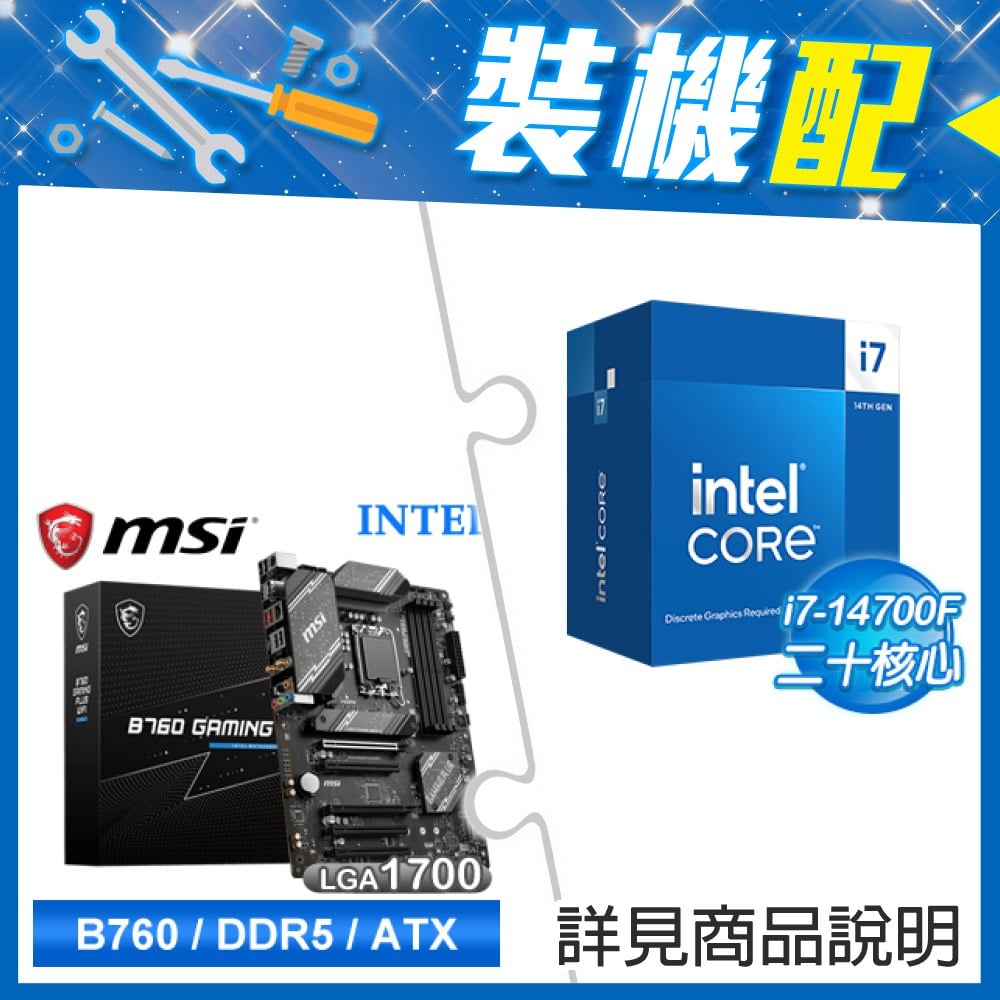 ☆裝機配★ i7-14700F+微星 B760 GAMING PLUS WIFI D5 ATX主機板