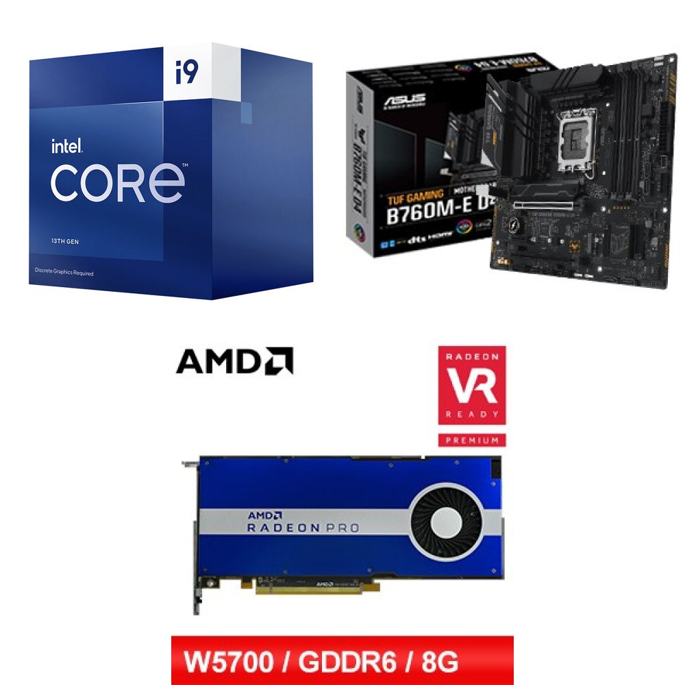 ☆裝機配★ i9-13900F《無內顯》+華碩 TUF GAMING B760M-E D4 M-ATX主機板+AMD RadeonPro W5700 8G 256bit專業繪圖卡