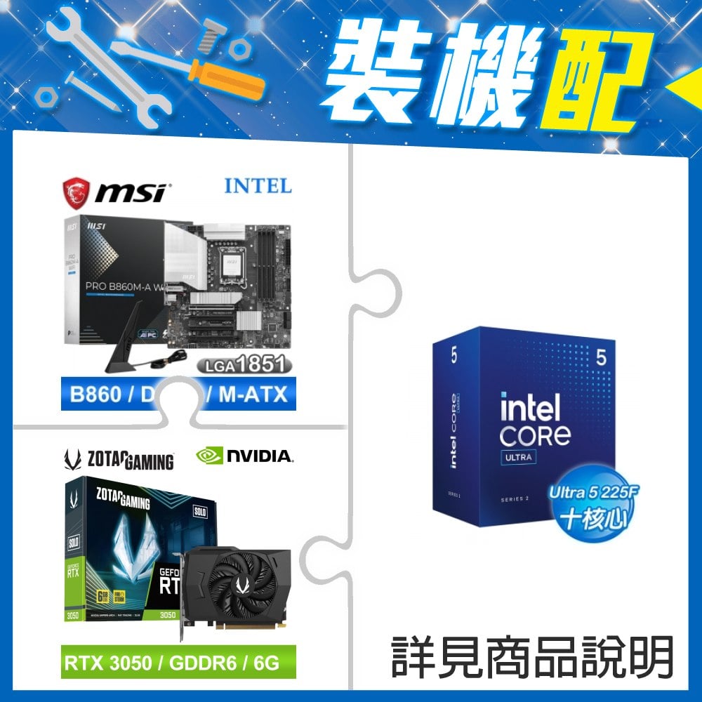 ☆裝機配★ Core U5 225F+微星 PRO B860M-A WIFI D5 MATX主機板+ZOTAC RTX3050 6G GDDR6 Solo 顯示卡
