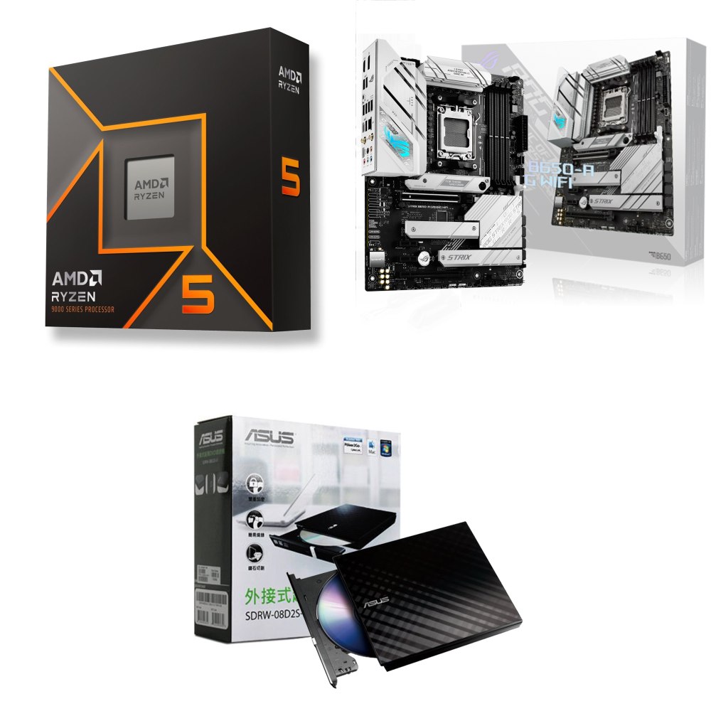 ☆裝機配★ AMD R5 9600X+華碩 ROG STRIX B650-A GAMING WIFI ATX主機板+華碩 SDRW-08D2S-U 外接式燒錄機《黑》