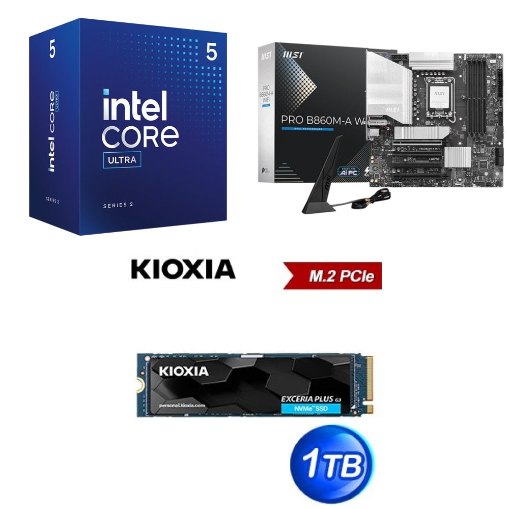 ☆裝機配★ Core U5 225F+微星 PRO B860M-A WIFI D5 MATX主機板+鎧俠 EXCERIA PLUS G3 1TB PCIe Gen4x4 SSD