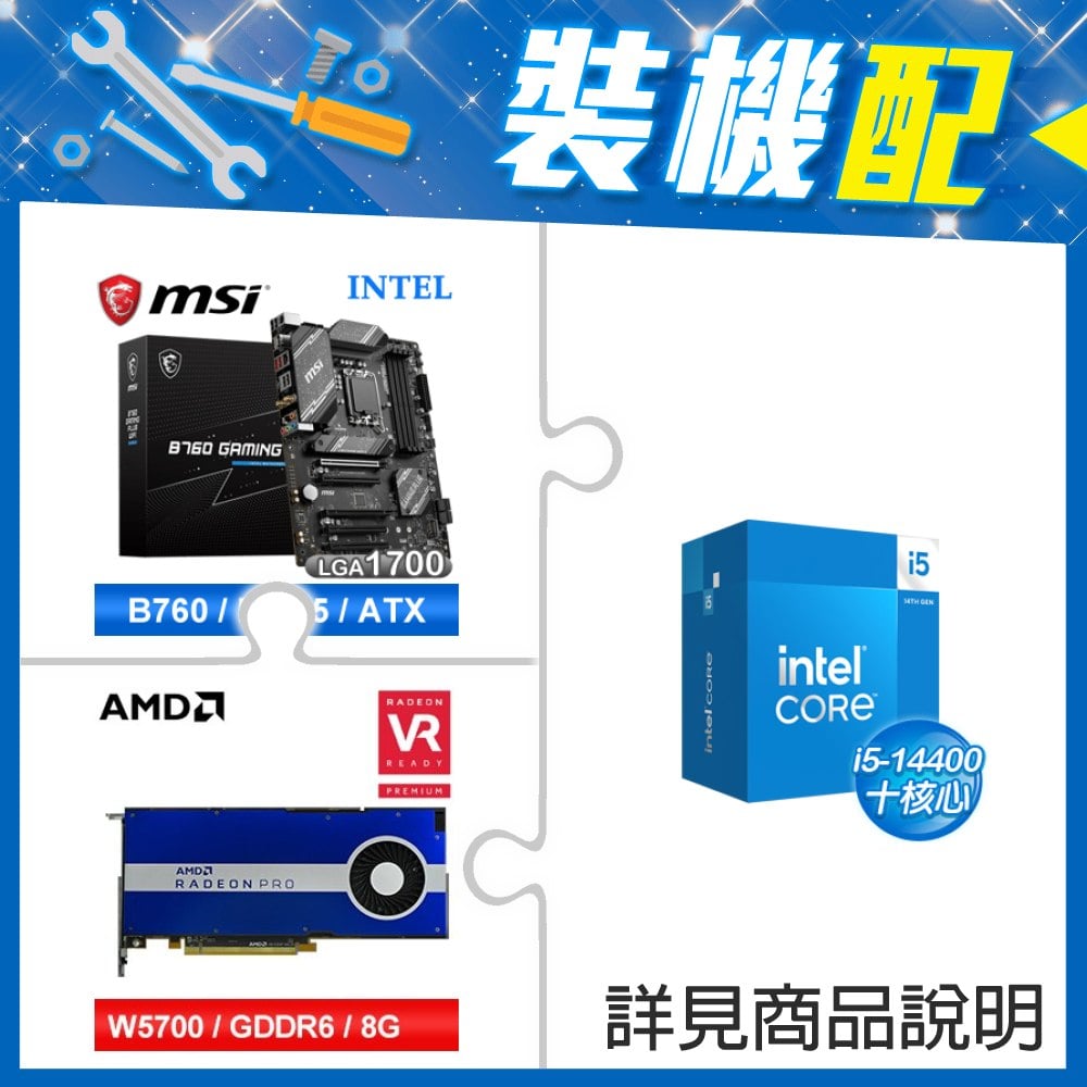 ☆裝機配★ i5-14400+微星 B760 GAMING PLUS WIFI D5 ATX主機板+AMD RadeonPro W5700 8G 256bit專業繪圖卡