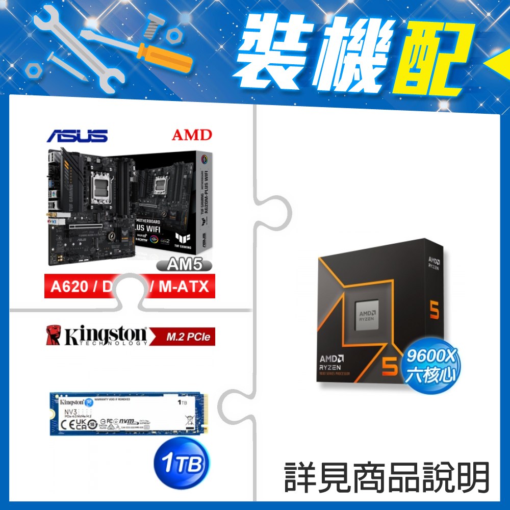 ☆裝機配★ AMD R5 9600X+華碩 TUF GAMING A620M-PLUS WIFI MATX主機板+金士頓 NV3 1TB M.2 PCIe SSD