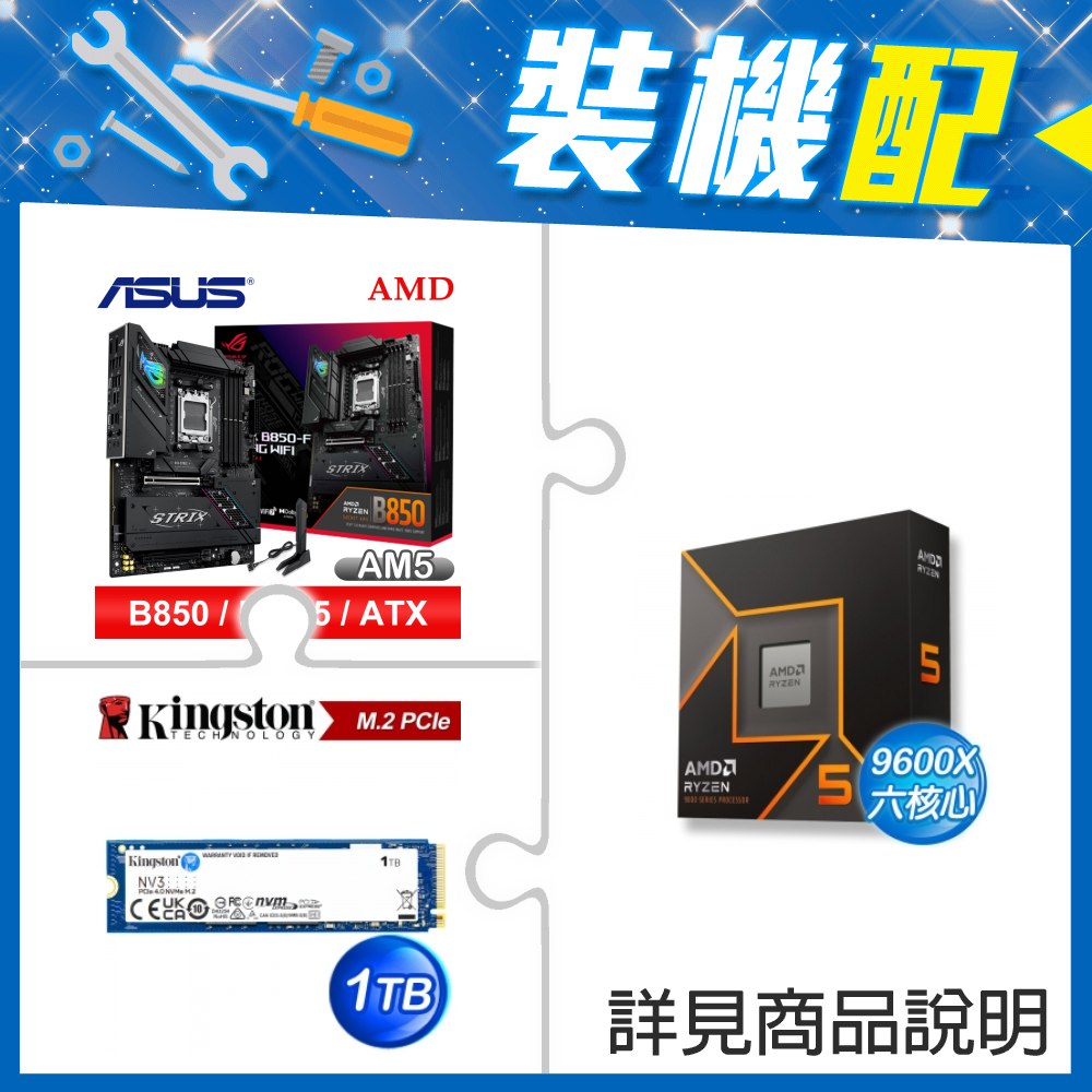 ☆裝機配★ AMD R5 9600X+華碩 ROG STRIX B850-F GAMING WIFI ATX主機板+金士頓 NV3 1TB M.2 PCIe SSD