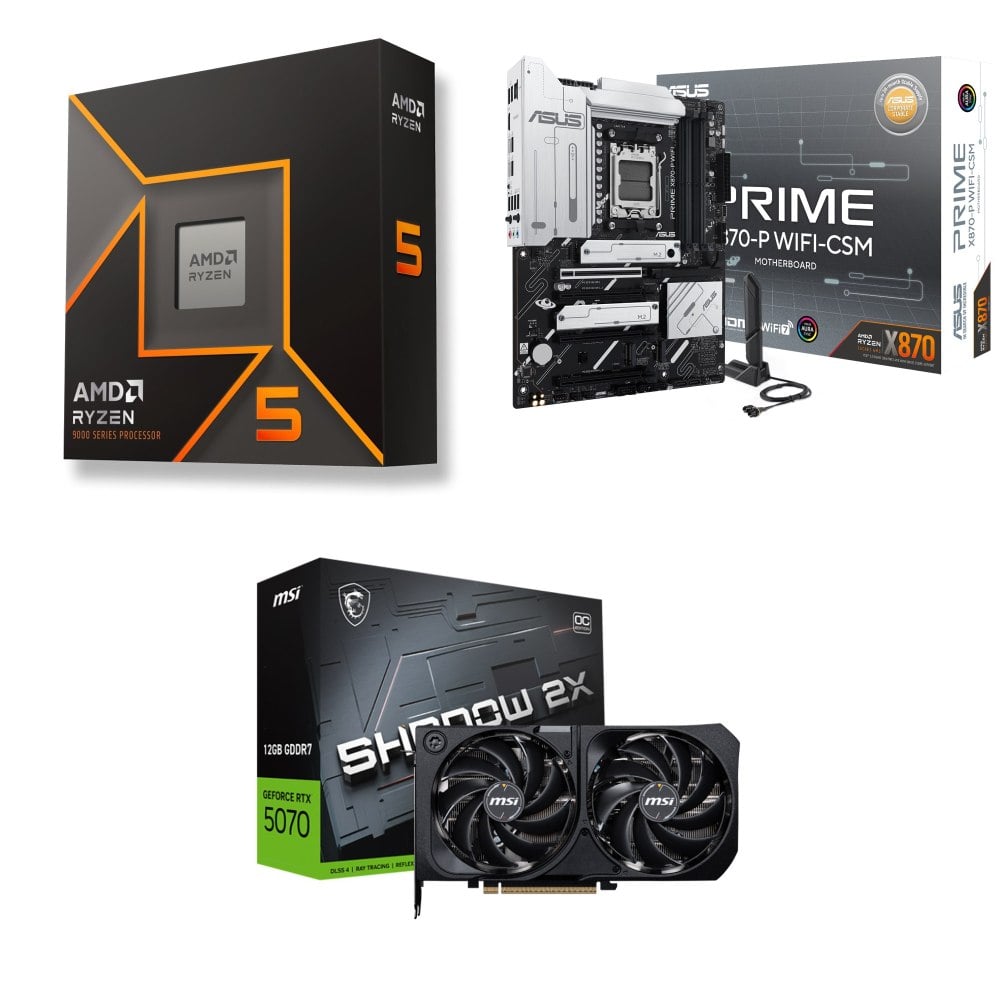 ☆裝機配★ AMD R9 9900X+華碩 PRIME X870-P WIFI-CSM ATX主機板+微星 RTX 5070 12G SHADOW 2X OC 顯示卡