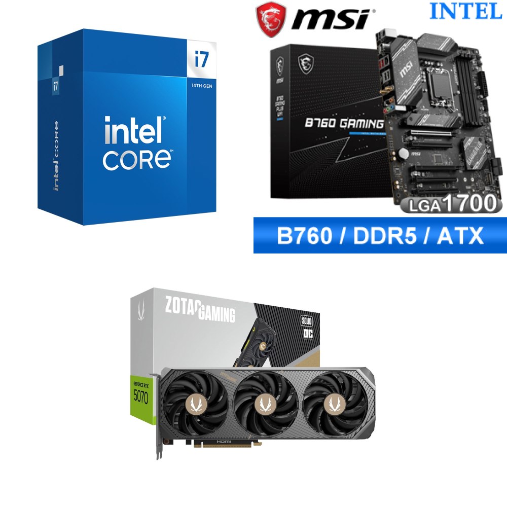 ☆裝機配★ i7-14700+微星 B760 GAMING PLUS WIFI D5 ATX主機板+索泰 RTX 5070 SOLID OC 12G 顯示卡