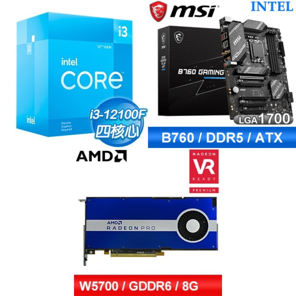 ☆裝機配★ i3-12100F+微星 B760 GAMING PLUS WIFI D5 ATX主機板+AMD RadeonPro W5700 8G 256bit專業繪圖卡