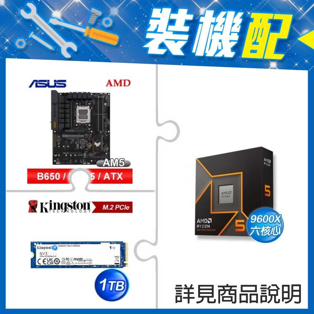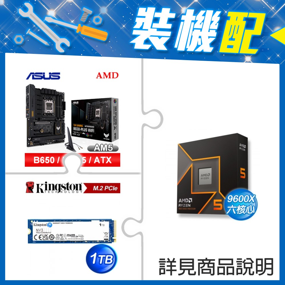 ☆裝機配★ AMD R5 9600X+華碩 TUF GAMING B650-PLUS WIFI ATX主機板+金士頓 NV3 1TB M.2 PCIe SSD