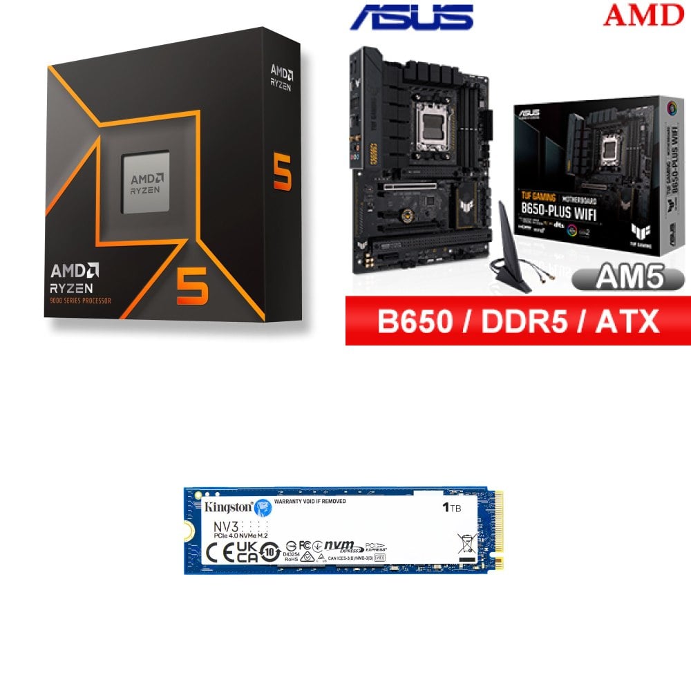 ☆裝機配★ AMD R9 9900X+華碩 TUF GAMING B650-PLUS WIFI ATX主機板+金士頓 NV3 1TB M.2 PCIe SSD