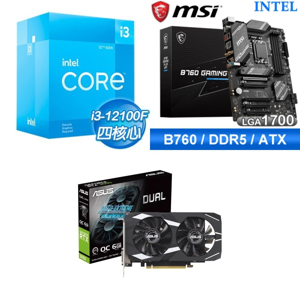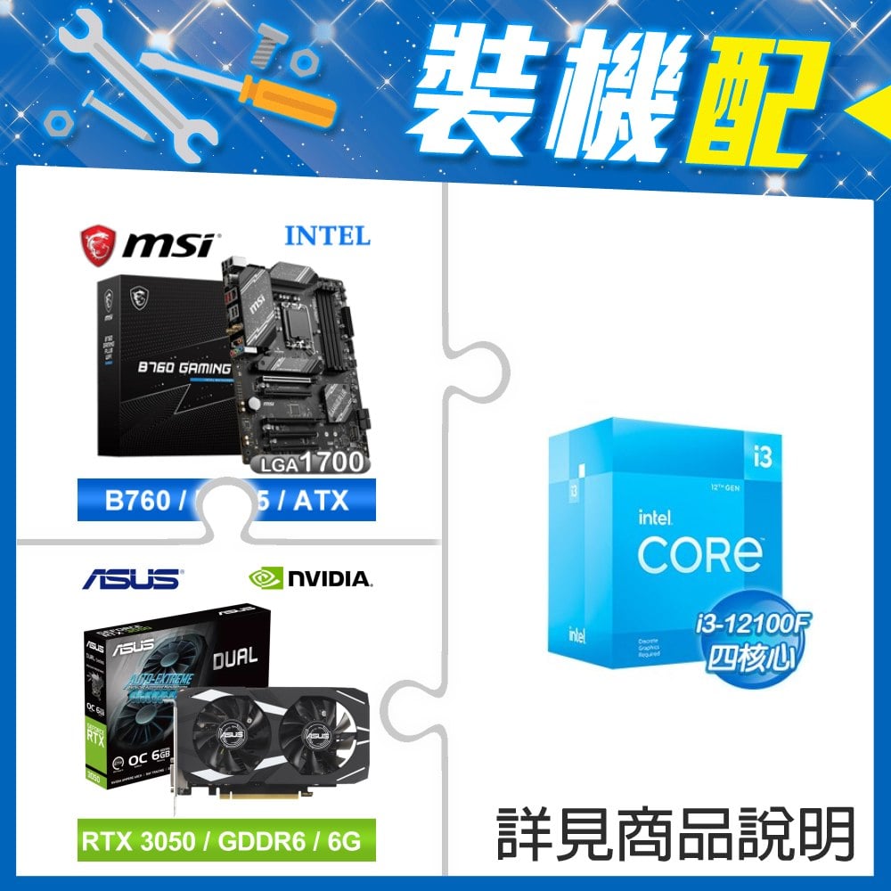 ☆裝機配★ i3-12100F+微星 B760 GAMING PLUS WIFI D5 ATX主機板+華碩 DUAL-RTX3050-O6G 顯示卡