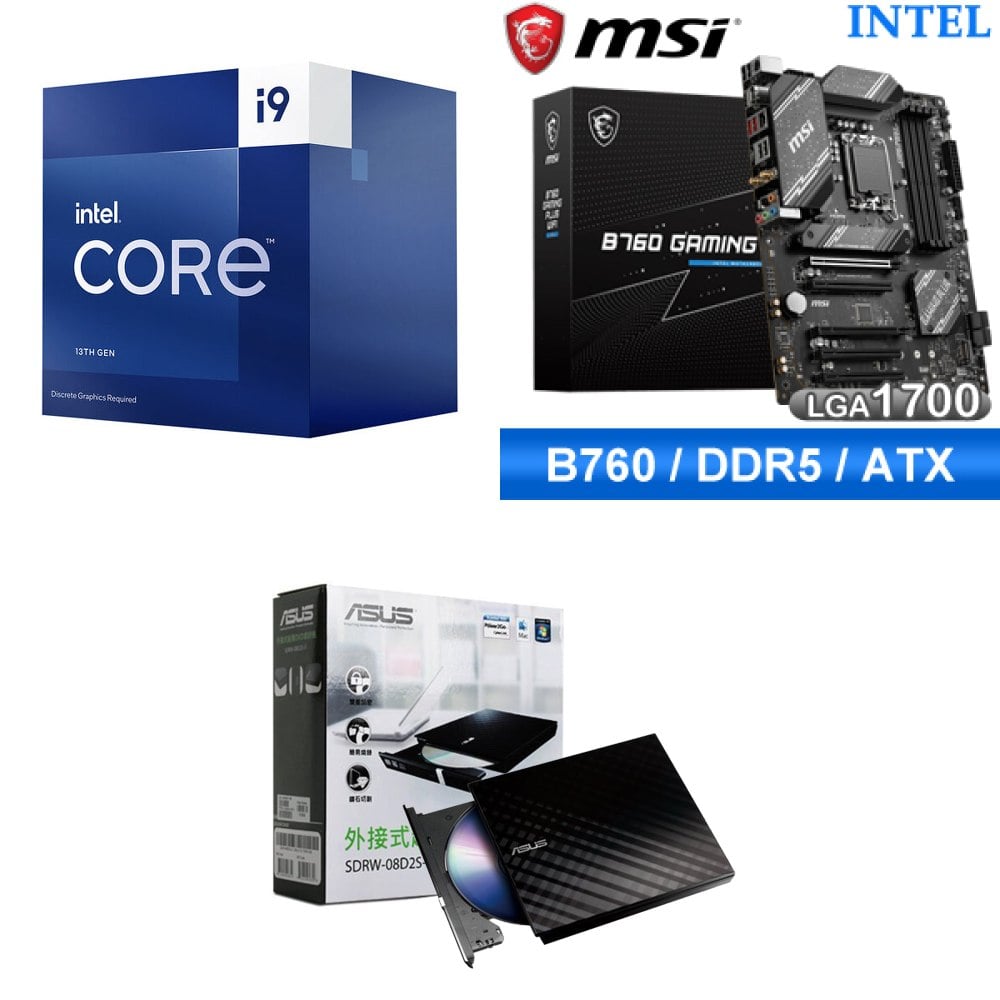 ☆裝機配★ i9-13900F《無內顯》+微星 B760 GAMING PLUS WIFI D5 ATX主機板+華碩 SDRW-08D2S-U 外接式燒錄機《黑》