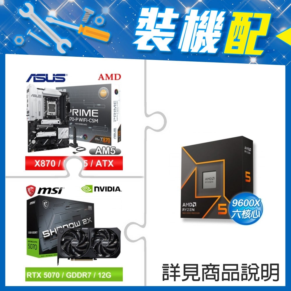 ☆裝機配★ AMD R5 9600X+華碩 PRIME X870-P WIFI-CSM ATX主機板+微星 RTX 5070 12G SHADOW 2X OC 顯示卡