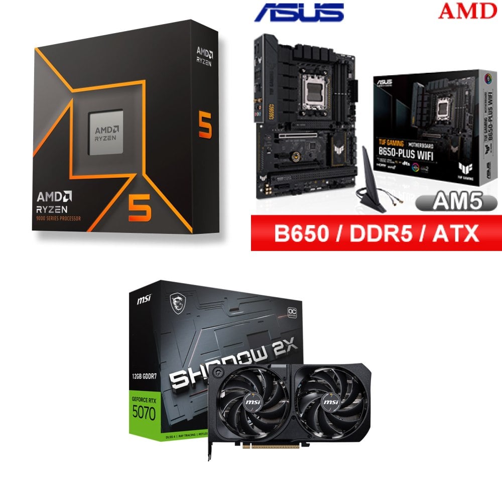 ☆裝機配★ AMD R5 9600X+華碩 TUF GAMING B650-PLUS WIFI ATX主機板+微星 RTX 5070 12G SHADOW 2X OC 顯示卡