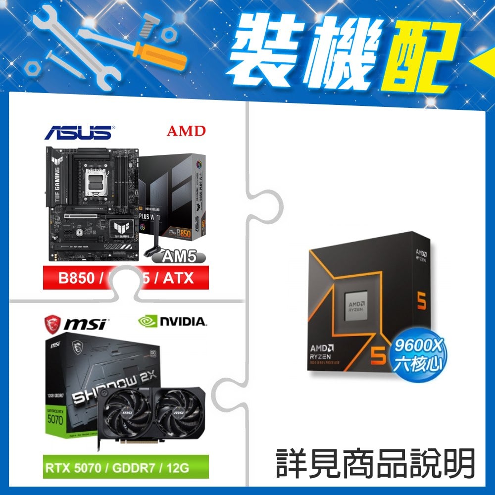 ☆裝機配★ AMD R5 9600X+華碩 TUF GAMING B850M-PLUS WIFI MATX主機板+微星 RTX 5070 12G SHADOW 2X OC 顯示卡