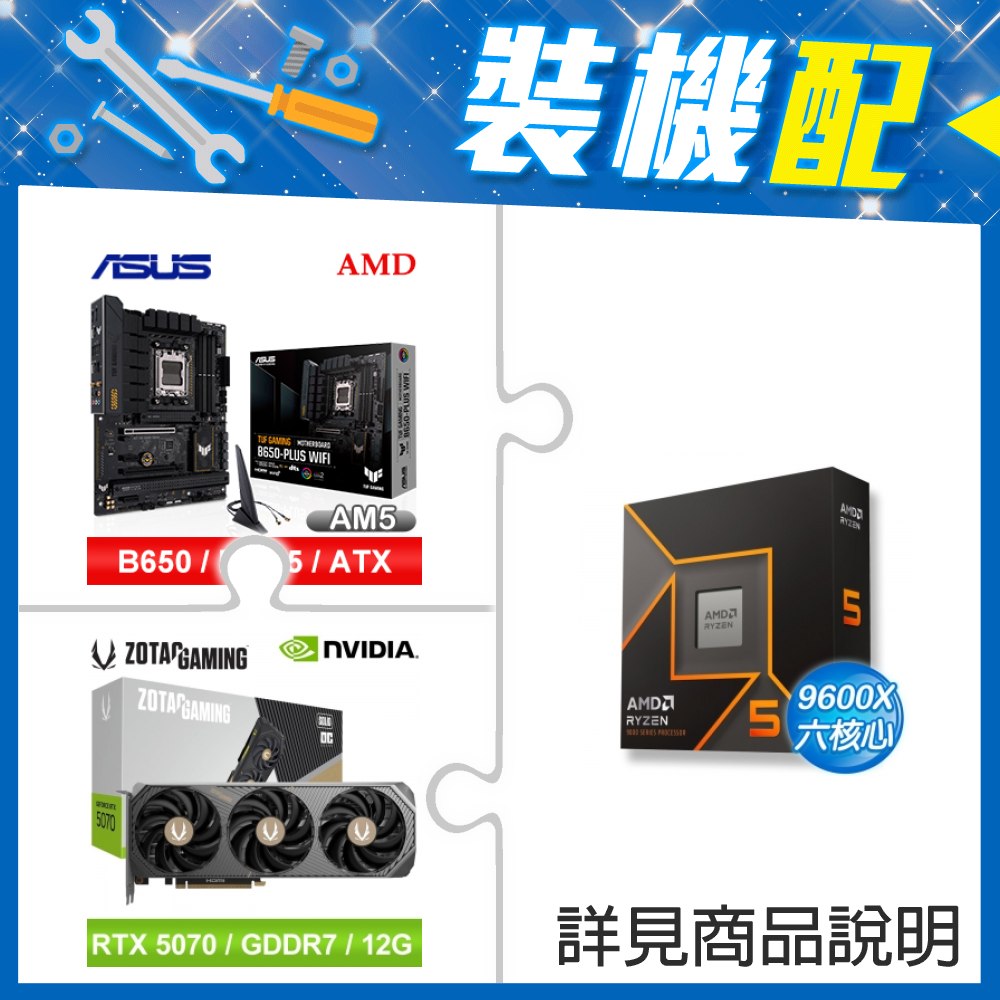☆裝機配★ AMD R5 9600X+華碩 TUF GAMING B650-PLUS WIFI ATX主機板+索泰 RTX 5070 SOLID OC 12G 顯示卡