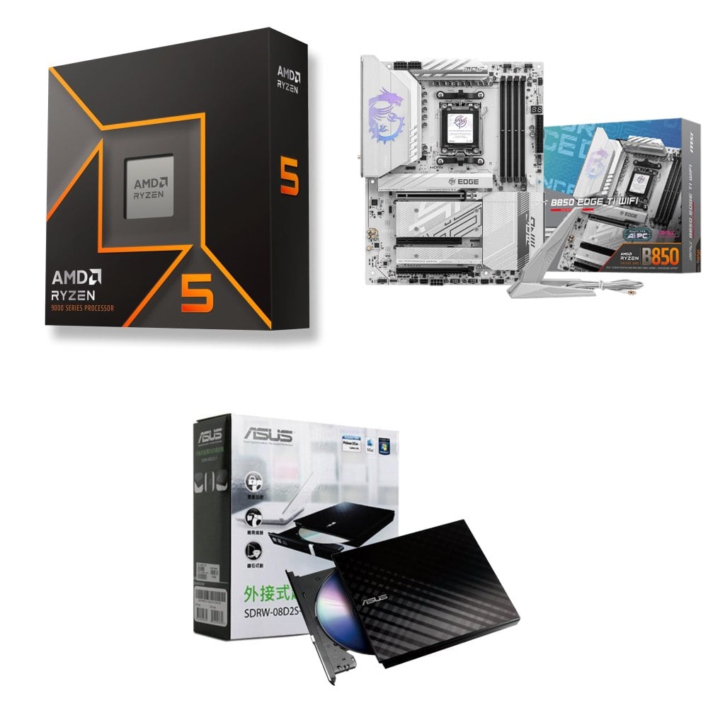 ☆裝機配★ AMD R5 9600X+微星 MPG B850 EDGE TI WIFI ATX主機板+華碩 SDRW-08D2S-U 外接式燒錄機《黑》