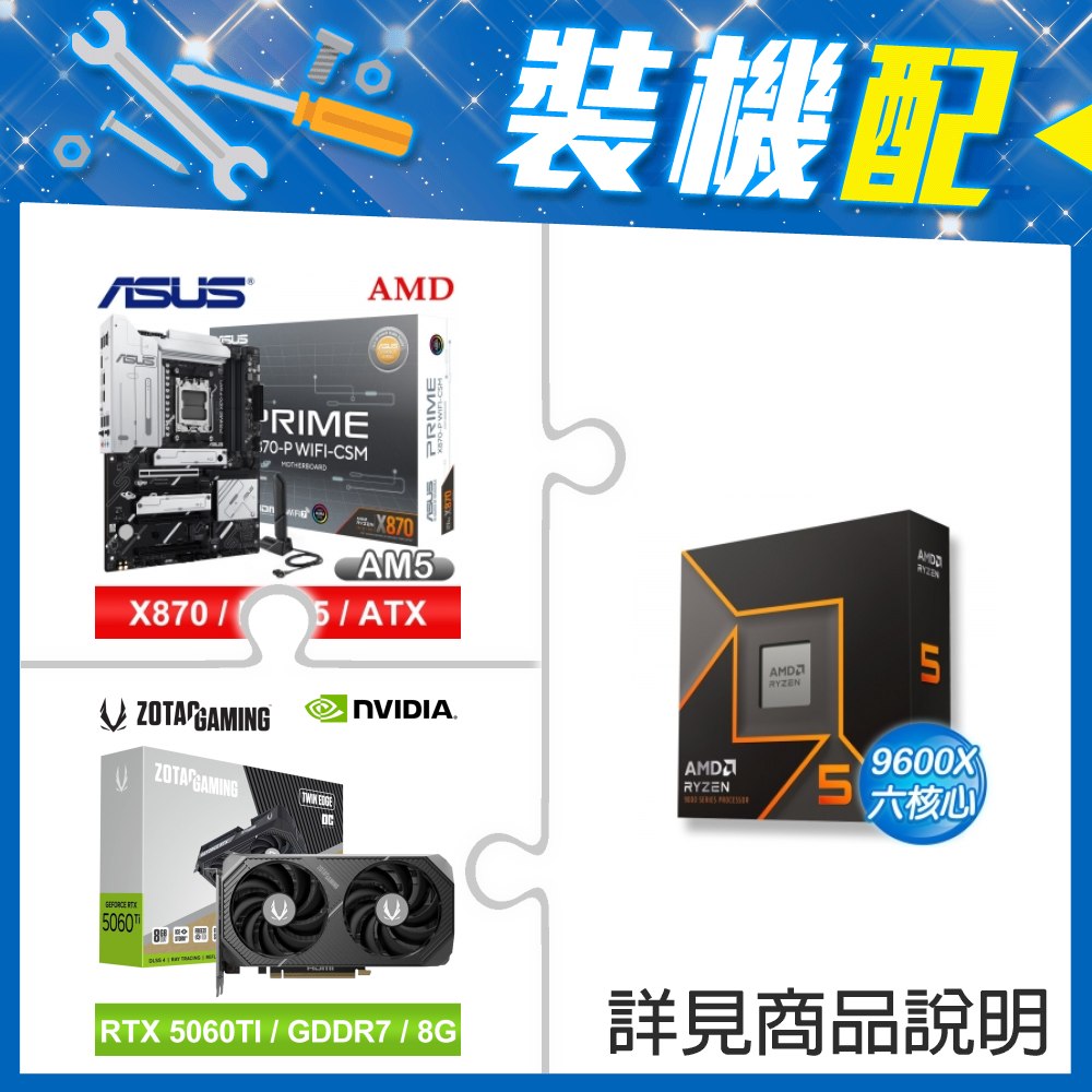☆裝機配★ AMD R5 9600X+華碩 PRIME X870-P WIFI-CSM ATX主機板+索泰 RTX 5060 TI 8GB Twin Edge OC 顯示卡
