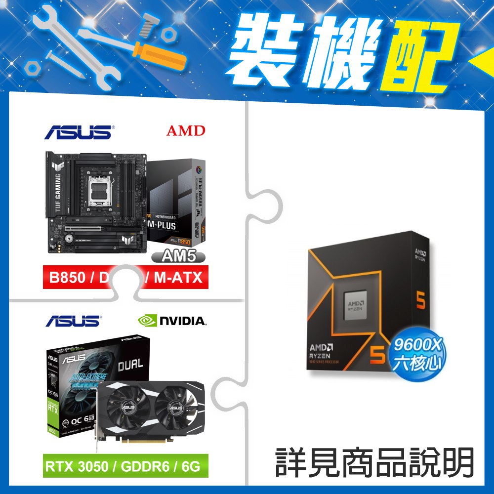 ☆裝機配★ AMD R5 9600X+華碩 TUF GAMING B850M-PLUS WIFI MATX主機板+華碩 DUAL-RTX3050-O6G 顯示卡