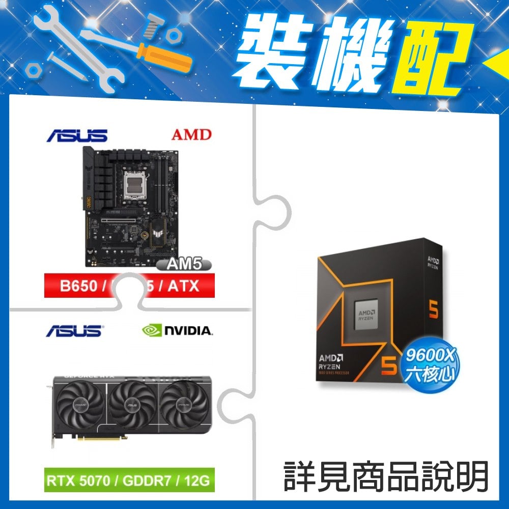 ☆裝機配★ AMD R5 9600X+華碩 TUF GAMING B850-PLUS WIFI ATX主機板+華碩 PRIME-RTX5070-O12G 顯示卡