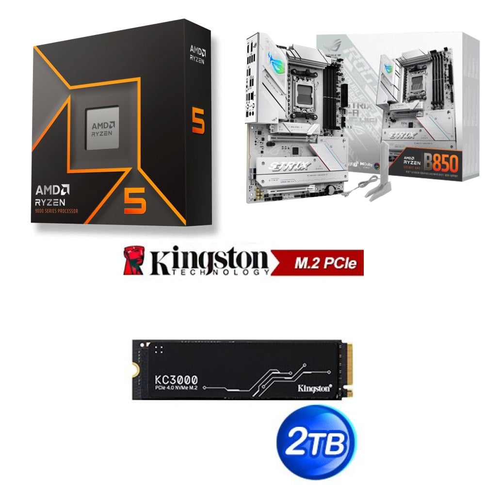 ☆裝機配★ AMD R5 9600X+華碩 ROG STRIX B850-A GAMING WIFI ATX主機板+金士頓 KC3000 2TB PCIe 4.0 NVMe M.2 SSD