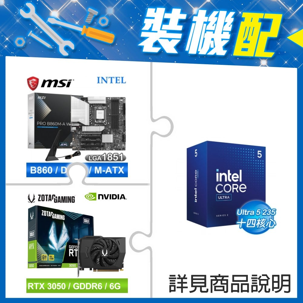 ☆裝機配★ Core U5 235+微星 PRO B860M-A WIFI D5 MATX主機板+ZOTAC RTX3050 6G GDDR6 Solo 顯示卡