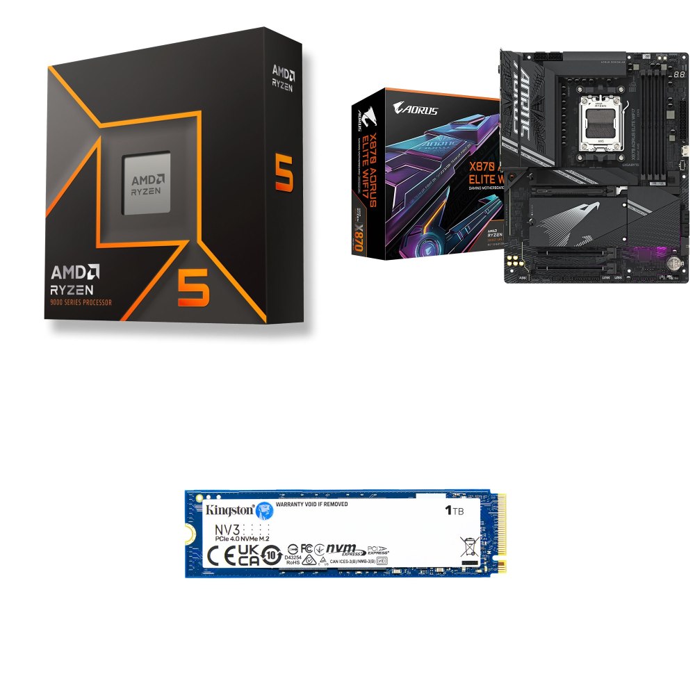 ☆裝機配★ AMD R5 9600X+技嘉 X870 AORUS ELITE WIFI7 ATX主機板+金士頓 NV3 1TB M.2 PCIe SSD