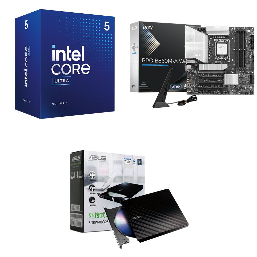 ☆裝機配★ Core U5 225+微星 PRO B860M-A WIFI D5 MATX主機板+華碩 SDRW-08D2S-U 外接式燒錄機《黑》