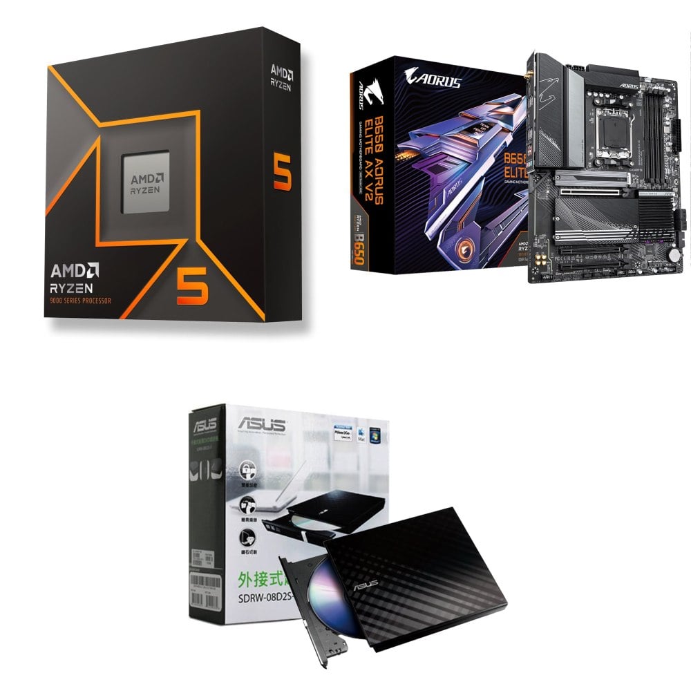 ☆裝機配★ AMD R5 9600X+技嘉 B650 AORUS ELITE AX V2 D5 ATX主機板+華碩 SDRW-08D2S-U 外接式燒錄機《黑》