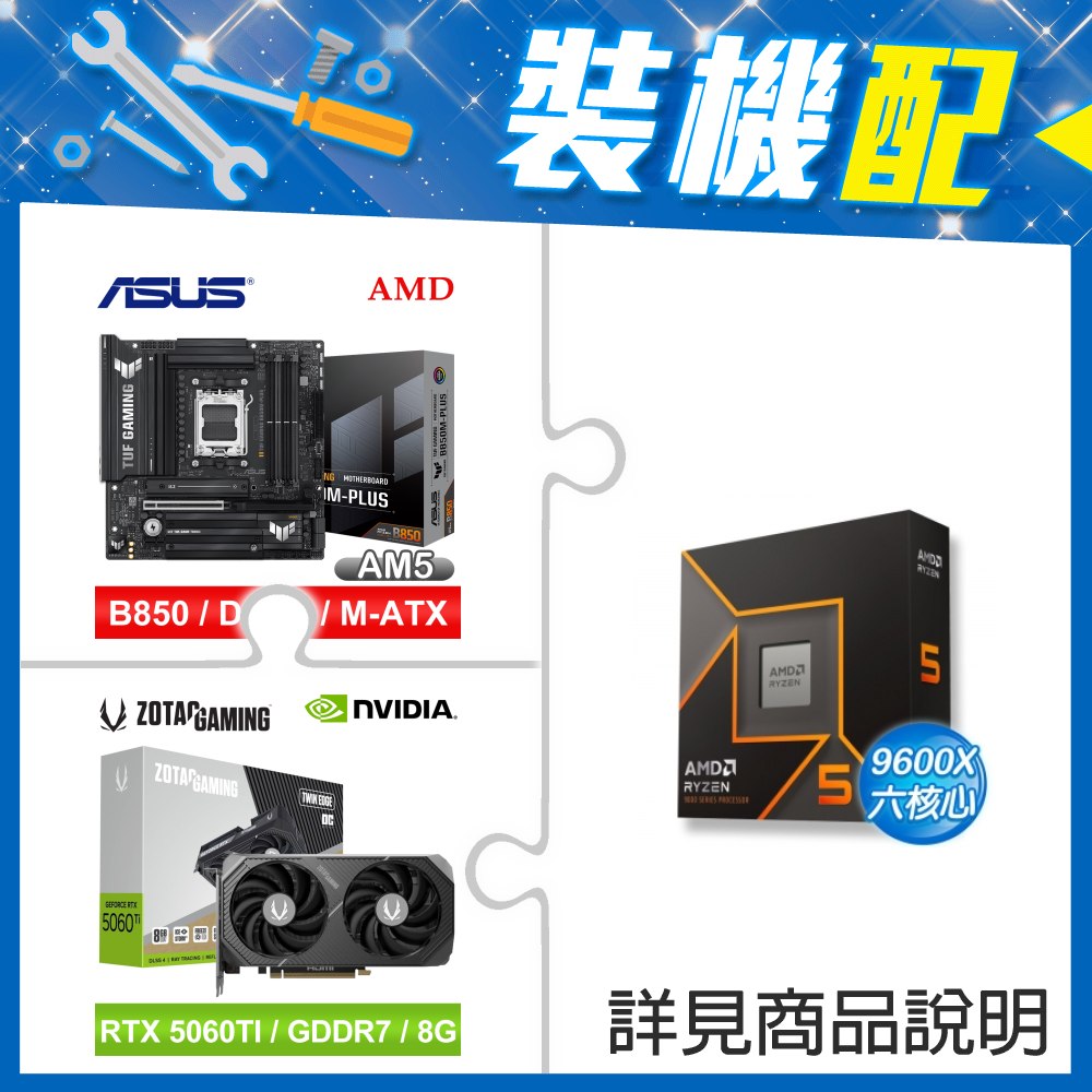 ☆裝機配★ AMD R5 9600X+華碩 TUF GAMING B850M-PLUS MATX主機板+索泰 RTX 5060 TI 8GB Twin Edge OC 顯示卡