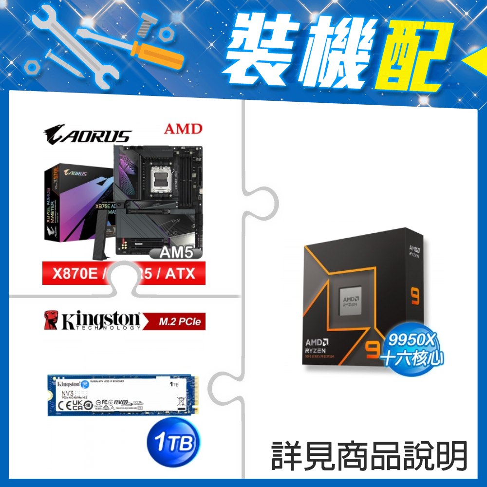 ☆裝機配★ AMD R9 9950X+技嘉 X870E AORUS MASTER ATX主機板+金士頓 NV3 1TB M.2 PCIe SSD
