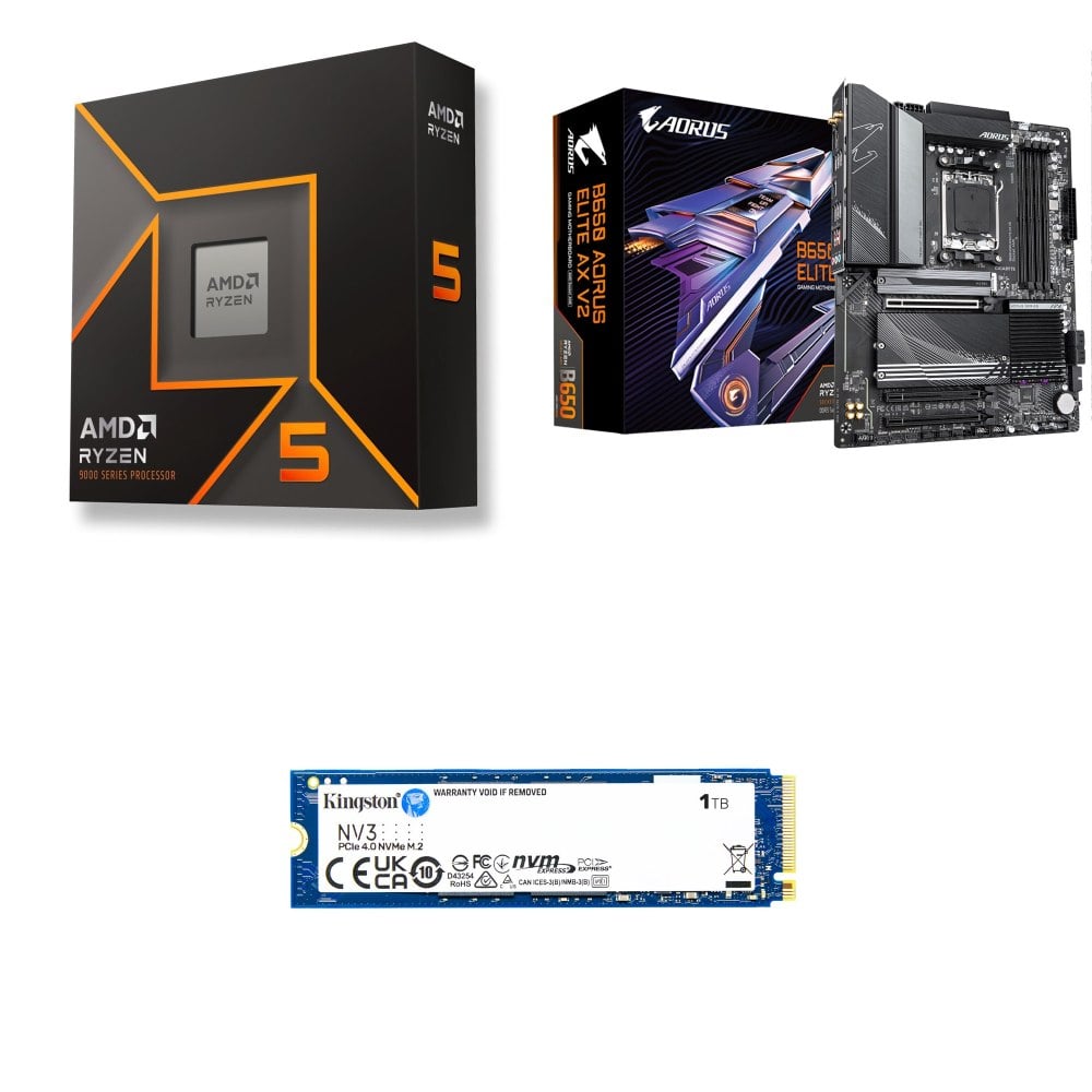 ☆裝機配★ AMD R5 9600X+技嘉 B650 AORUS ELITE AX V2 D5 ATX主機板+金士頓 NV3 1TB M.2 PCIe SSD
