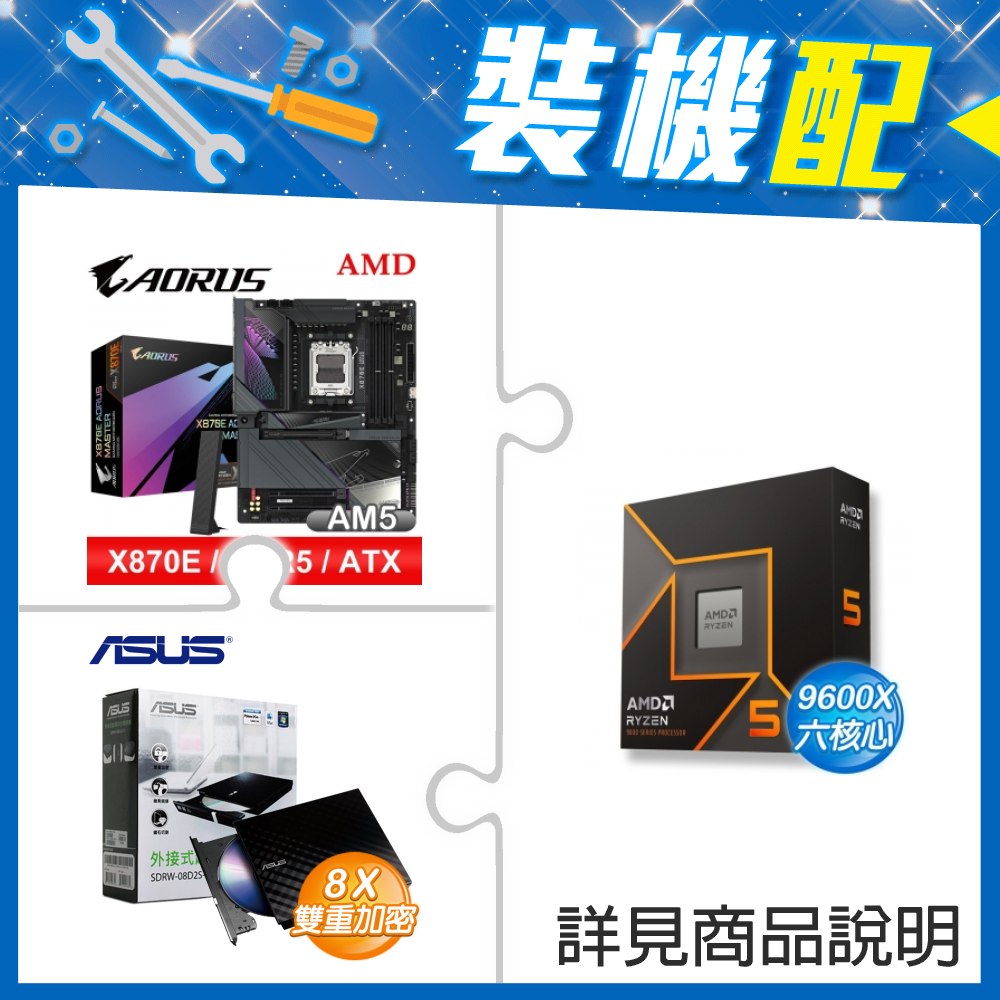 ☆裝機配★ AMD R5 9600X+技嘉 X870 AORUS ELITE WIFI7 ATX主機板+華碩 SDRW-08D2S-U 外接式燒錄機《黑》