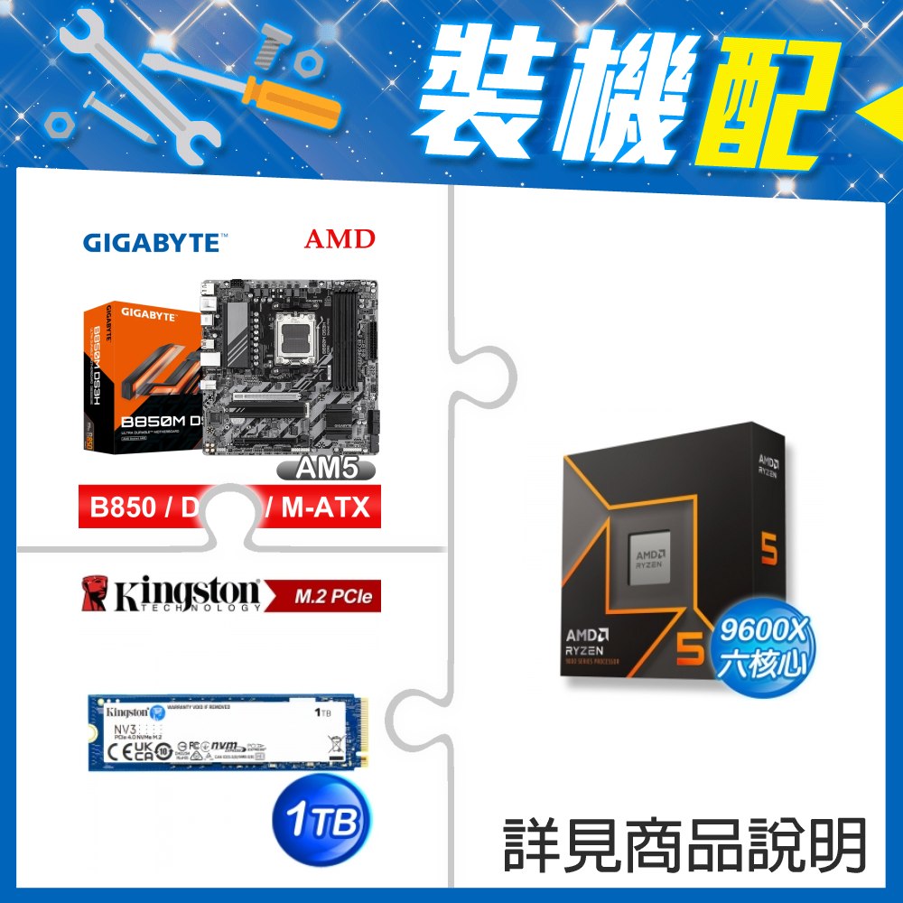 ☆裝機配★ AMD R5 9600X+技嘉 B850M GAMING X WIFI6E MATX主機板+金士頓 NV3 1TB M.2 PCIe SSD