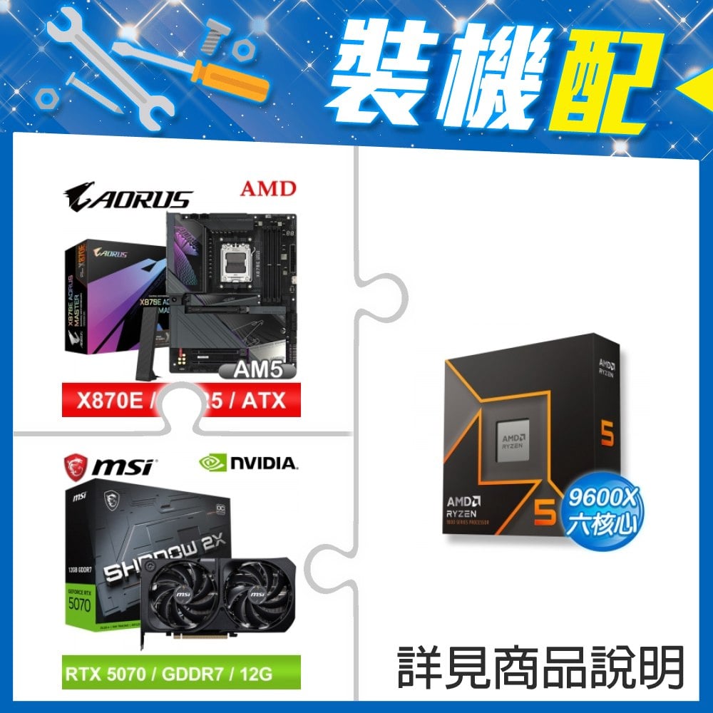 ☆裝機配★ AMD R5 9600X+技嘉 X870 AORUS ELITE WIFI7 ATX主機板+微星 RTX 5070 12G SHADOW 2X OC 顯示卡