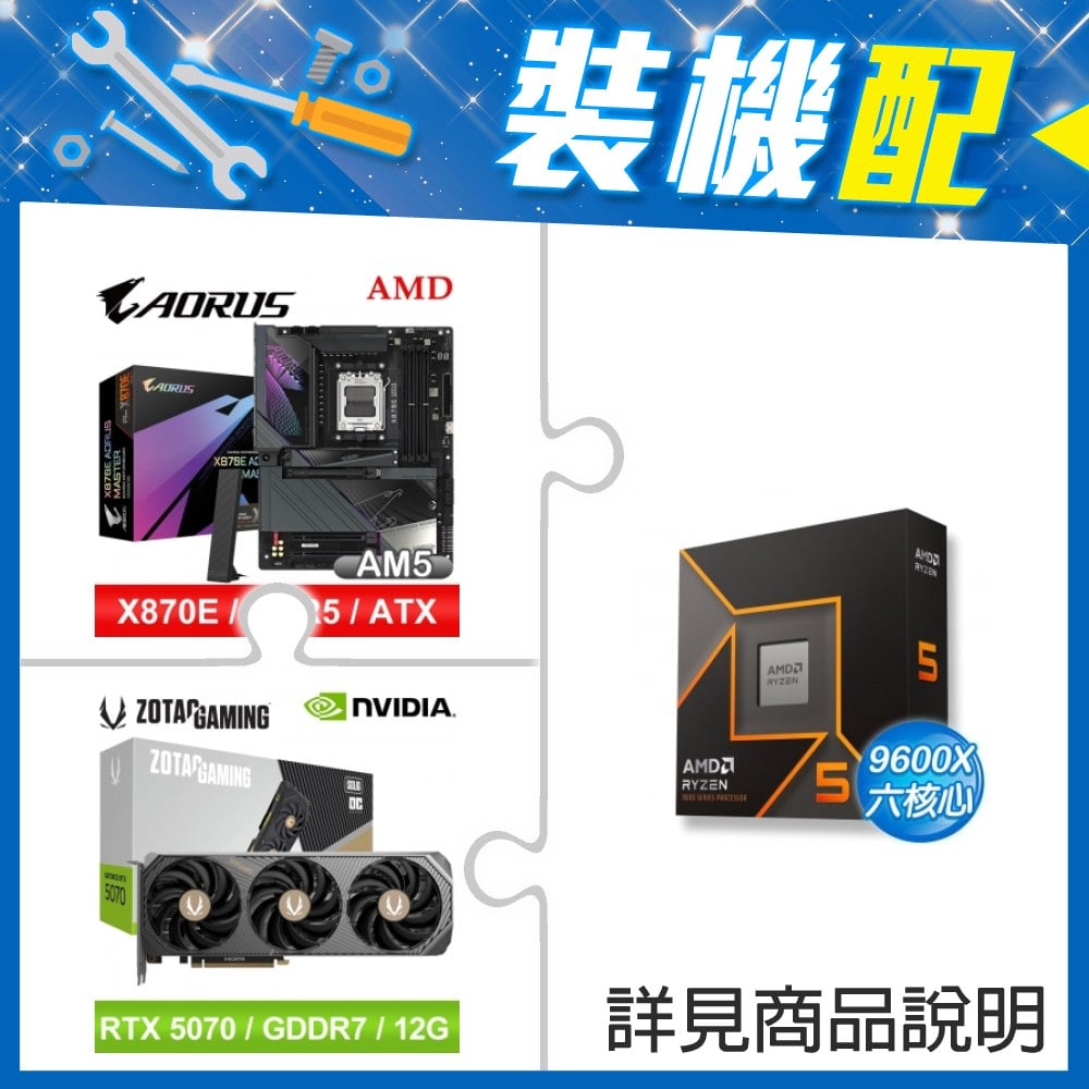 ☆裝機配★ AMD R5 9600X+技嘉 X870E AORUS MASTER ATX主機板+索泰 RTX 5070 SOLID OC 12G 顯示卡