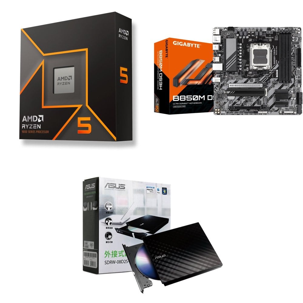 ☆裝機配★ AMD R9 9900X+技嘉 B850M DS3H MATX主機板+華碩 SDRW-08D2S-U 外接式燒錄機《黑》