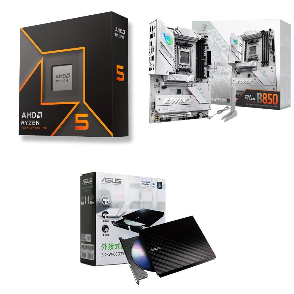 ☆裝機配★ AMD R5 9600X+華碩 ROG STRIX B850-A GAMING WIFI ATX主機板+華碩 SDRW-08D2S-U 外接式燒錄機《黑》