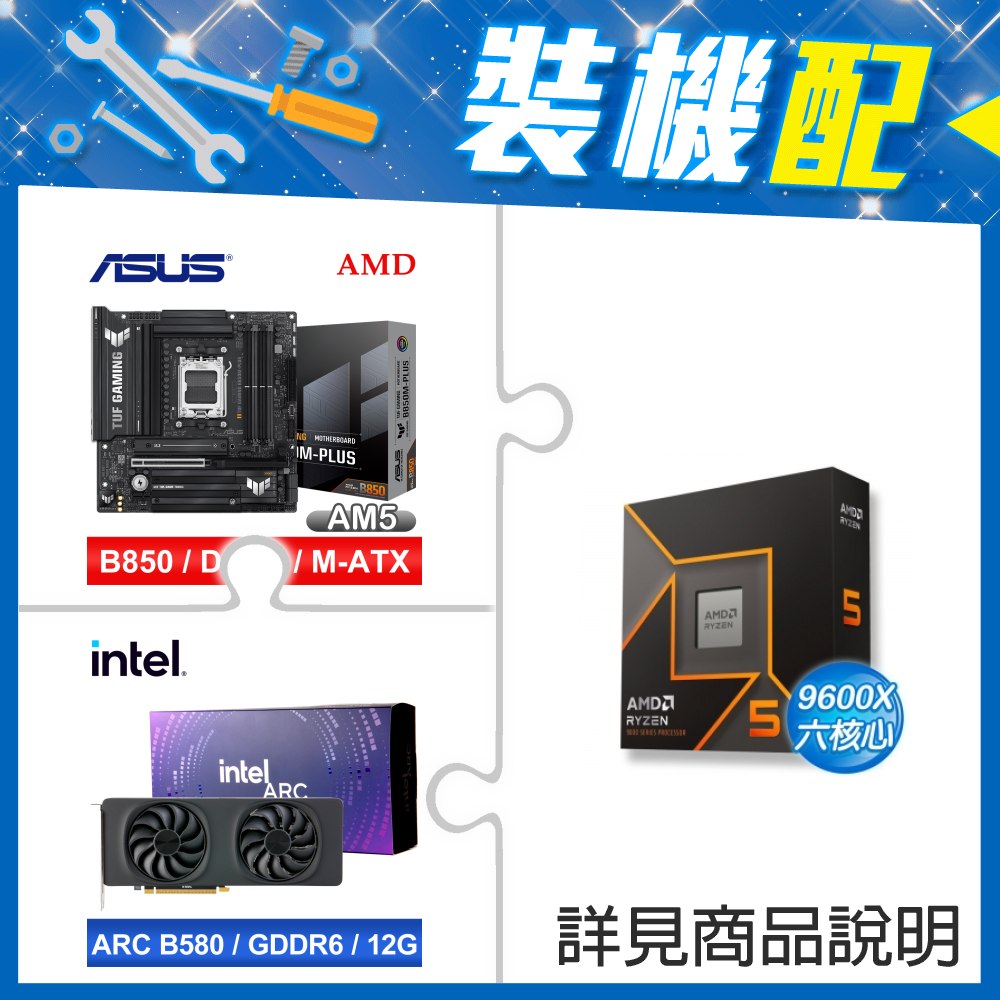 ☆裝機配★ AMD R5 9600X+華碩 TUF GAMING B850M-PLUS MATX主機板+Intel Arc B580 12G 20 Core 顯示卡
