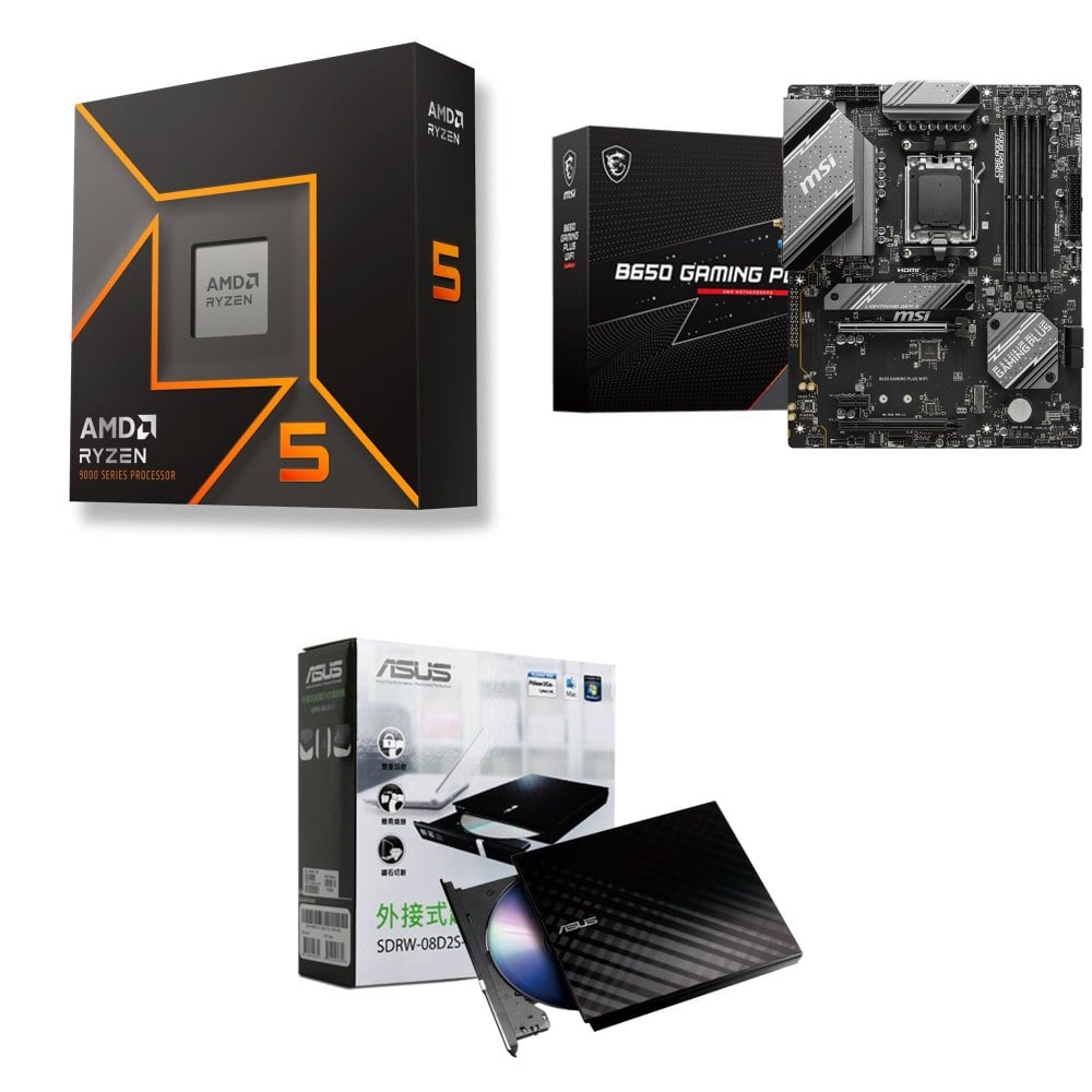☆裝機配★ AMD R5 9600X+微星 B650 GAMING PLUS WIFI D5 ATX主機板+華碩 SDRW-08D2S-U 外接式燒錄機《黑》